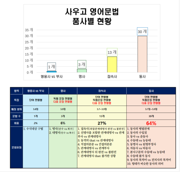 사우고 영어 내신을 시험 구조 기준으로 분석하고