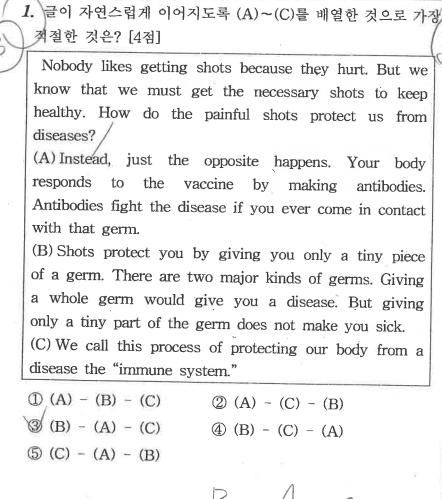 순서 배열 문제에서 이런 장면이 반복됩니다.